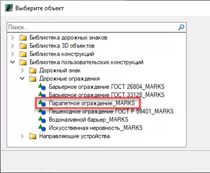 - По умолчанию парапетное ограждение моделируется из системной библиотеки конструкций. При моделировании парапетного ограждения необходимо использовать пользовательскую библиотеку конструкций используя конструкцию «Парапетное ограждение_MARKS»;