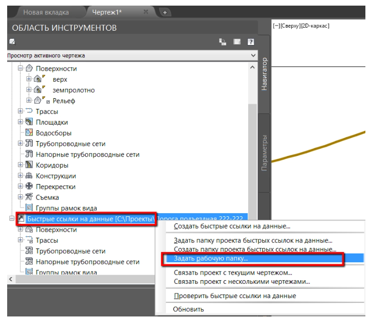 Главным инструментом управления разделения моделей в AutoCAD Civil 3D является инструмент быстрых ссылок на данные.