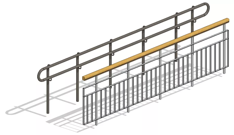 - Элементы должны быть выполнены системным семейством категории «Ограждения» инструментом «Ограждение».