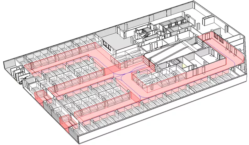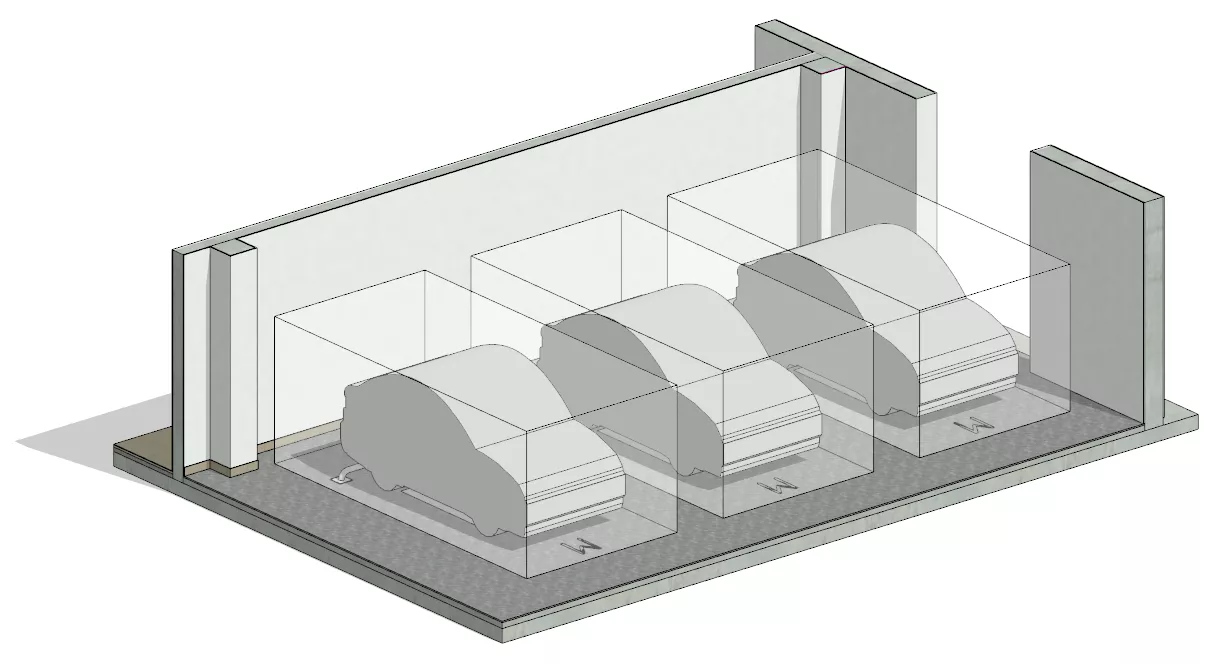 - Для корректного подсчета площади парковочных мест непрямоугольной формы зоны машиномест моделируются контекстными семействами (модель в контексте). Эти семейства участвуют в проверках на коллизии. В стандартном семействе парковочного места отключается зона обслуживания. Эти семейства не участвуют в проверках на коллизии.