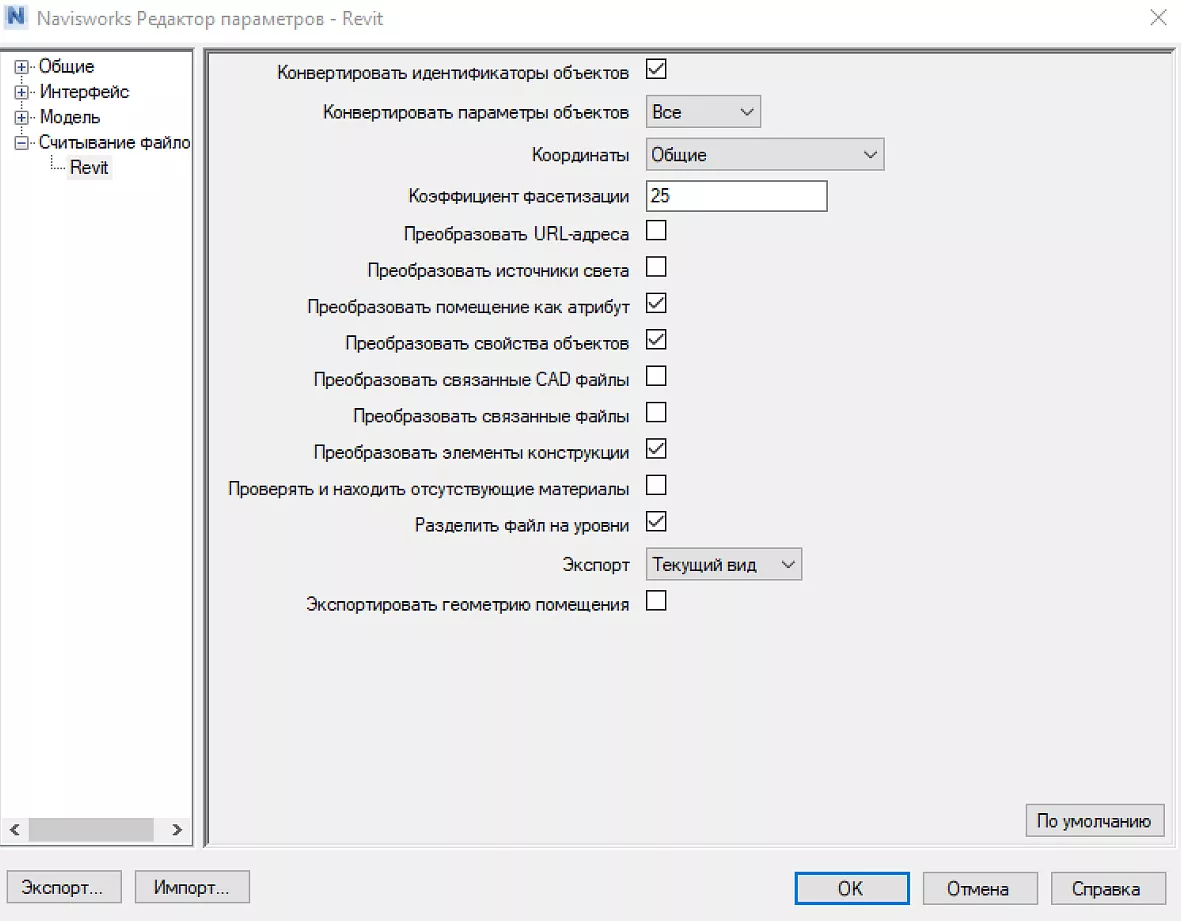 | Модель содержит настроенный 3D вид для экспорта в Navisworks с названием «Navisworks» | ||||