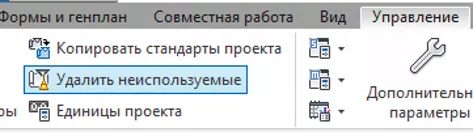- Некоторые неиспользуемые элементы (шаблоны видов, виды, листы, спецификации) не могут быть удалены через инструмент “Удалить неиспользуемые”. Данные элементы следует удалять вручную.