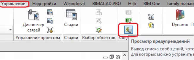 - BIM-менеджеру/координатору следует периодически просматривать список предупреждений и по возможности устранять их причины.