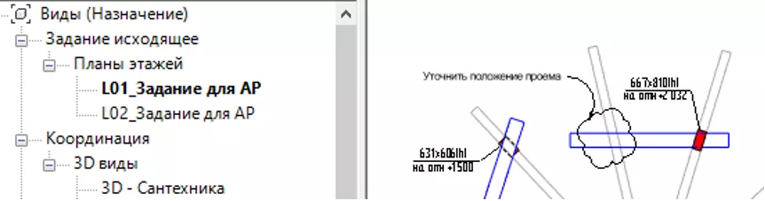 Для подготовки задания следует создать в файле проекта (например, «Корпус 3 ОВ») отдельные планы и задать для них определенное имя, например «L01_Задание для АР». Необходимые текстовые примечания и выноски наносить на данном плане:
