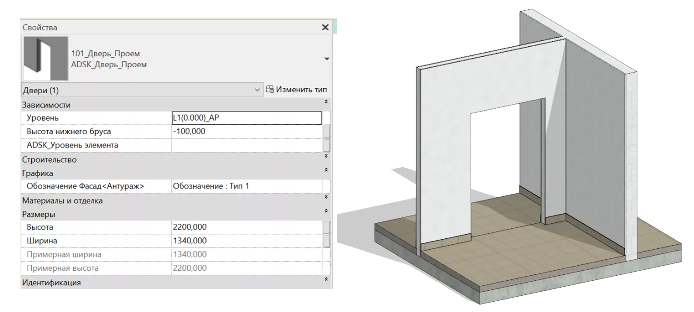 Проемы должны образовывать физическое вырезание объема в стенах или перекрытиях. |