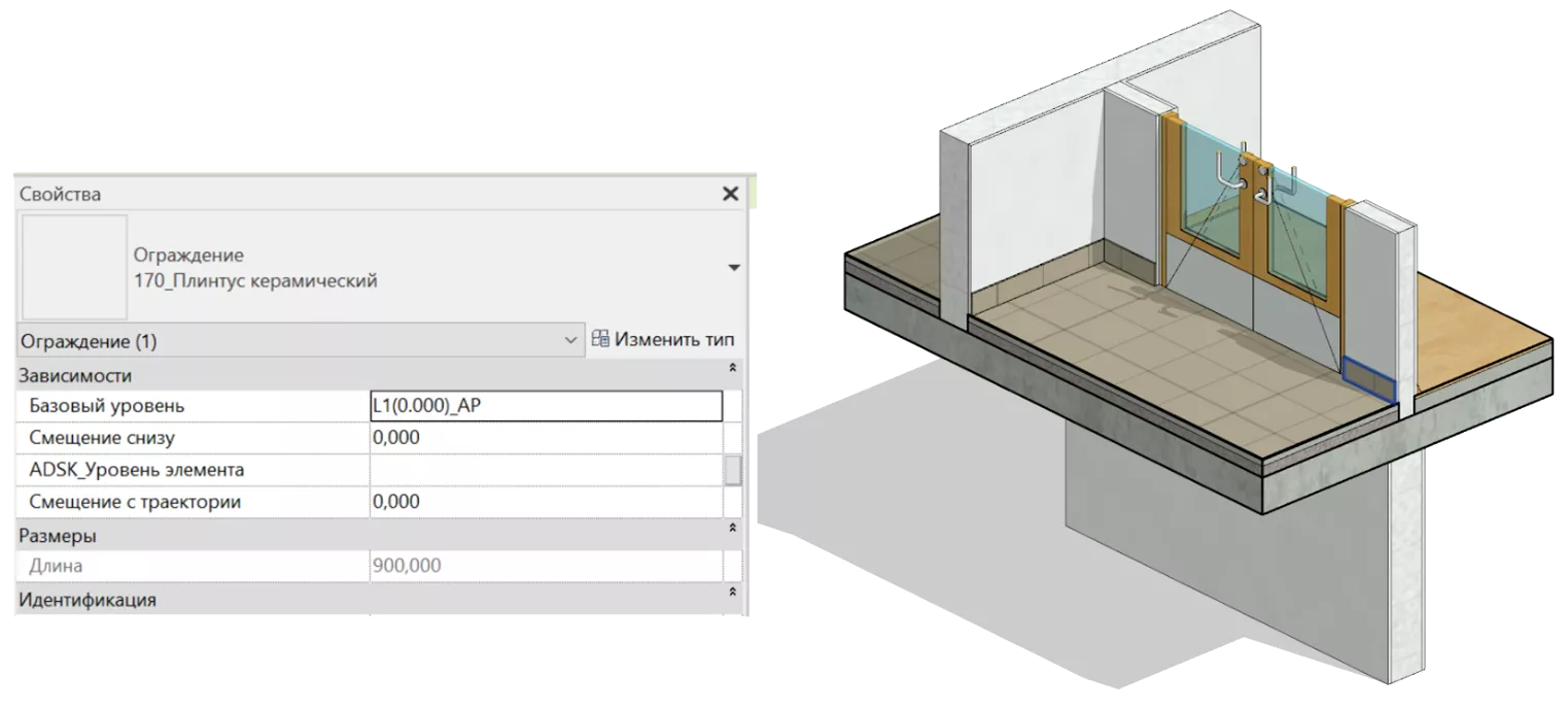 Системное семейство категории «Ограждения» инструментом «Ограждение», либо «Стена» |