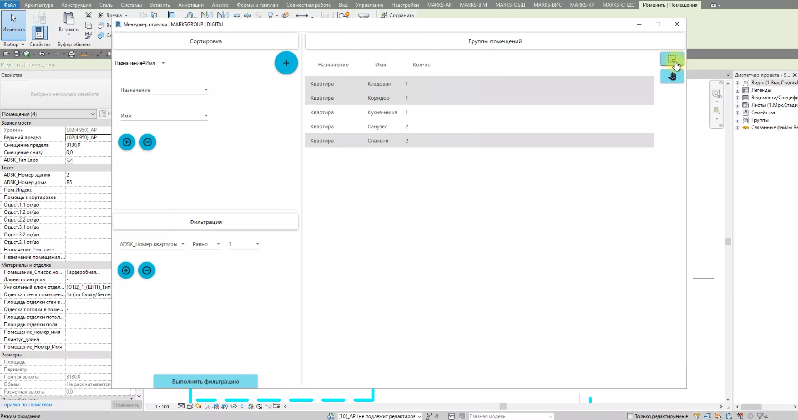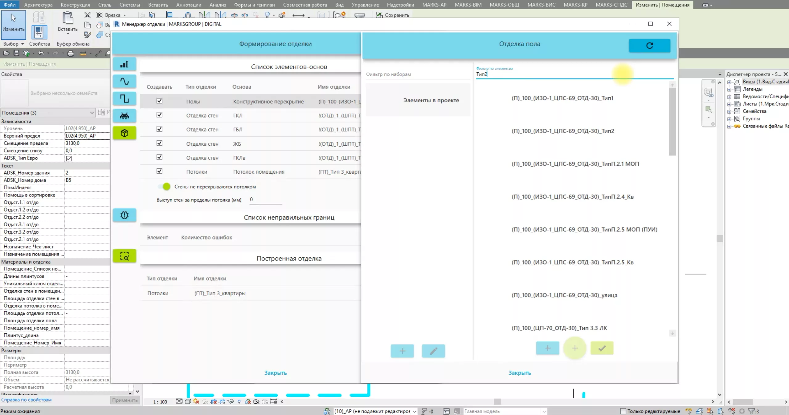 Решение Отделка помещений от MARKS DIGITAL - набор инструментов, предоставляющий полный цикл работы с отделкой помещений. Включает в себя процессы моделирования, трансфера данных и оформления документации.